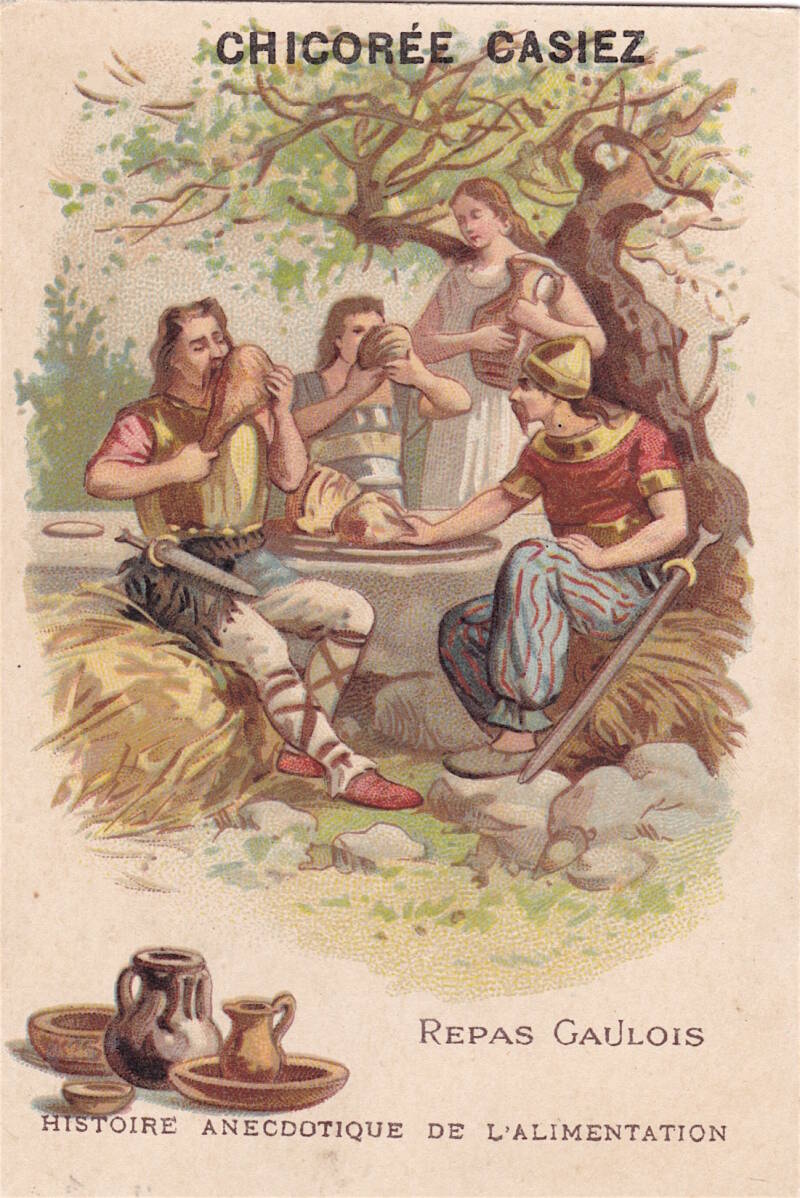 La bière, ou « cervoise » (cervisia), était la boisson nationale, même si la vigne gagna lentement les coteaux des vallées du Rhône, de la Saône et de la Garonne. Et, de ce fait,, selon l’archéologue Matthieu Poux (30), le vin eut du mal à s’imposer en Gaule ; il s’y reprit à deux fois, deux tentatives séparées par plusieurs siècles, au cours desquels la bière et l’hydromel retrouvèrent la faveur des Celtes. Vers 600 av. J.-C., lorsque des colons grecs installèrent une colonie à Marseille et plantèrent les premiers ceps sur le littoral, le vin progressa peu à peu vers le Nord. Le succès du nouveau breuvage fut, certes, fulgurant, mais éphémère, et les Celtes revinrent vite à la bière et à l’hydromel. « La Gaule des IVe et IIIe siècles ne livre plus aucune trace de vin importé, alors que le vignoble marseillais connaît son apogée. Ce recul du vin en Gaule n’est donc pas causé par une crise de la production, mais par un effondrement de la demande indigène. » Il fallut attendre le IIe siècle av. J.-C. pour voir le commerce du vin vers la Gaule reprendre, à l’initiative, cette fois-ci, de marchands italiens. « Les marchands italiens ont pris le relais des Grecs, en acheminant de nouvelles amphores par dizaines de milliers sur les côtes de la Provence », poursuit l’archéologue. « Là encore, la diffusion est fulgurante. On estime à plusieurs millions d’hectolitres le volume de vin importé en moins d’un siècle. Les tessons d’amphores sont si nombreux que les Gaulois les réutilisent pour paver les rues ou construire des murs. » Contrairement à ce qui a été souvent prétendu, ce n’est pas la conquête romaine qui fit la fortune des marchands de vins italiens en Gaule. « Les Celtes avaient bien anticipé le mouvement. La demande précède l’offre. C’est un net accroissement des besoins indigènes qui a incité les marchands romains à renforcer leur présence en Narbonnaise. » A partir de ce moment-là, bière et vin rivalisèrent… D’après certains, cette réticence évidente à remplacer la bière par le vin traduirait une forme de résistance à l’influence romaine. D’aucuns y voient aussi la trace des tensions qui devaient exister entre des sociétés gauloises qui se démocratisaient sur le modèle romain et d’autres restées plus attachées aux valeurs traditionnelles.