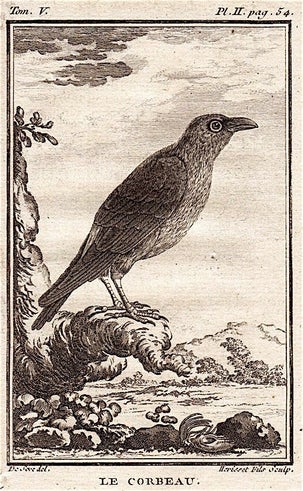 Le nom de corbeau était aussi donné au cormoran, nous dit Alfred Franklin (La Cuisine, 1888). Rabelais mentionne également, parmi les gibiers à plumes, les corbigeaux, soit les cormorans (aussi nommés corbivaux), espèce du genre corbeau.