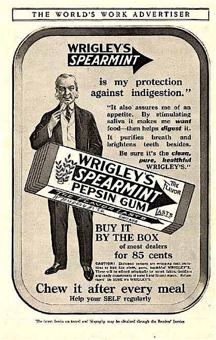 Inévitablement, d’autres « fabricants » n’avaient pas tardé à s’intéresser au produit, qui pouvait se présenter sous diverses formes : bonbons, pastilles, etc. Certains apportèrent même des améliorations. Ainsi, en 1880, John Colgan inventa un procédé pour que le chewing gum conservât son goût plus longtemps. D’autre part, l’ajout au chicle d’un sirop de glucose aromatisé à la menthe revient à un certain Williams J. Whit, qui lança le Yucatan Chewing Gum. Quant à William Wrigley Jr., pionnier de la publicité pour le chewing-gum au tout début du XXe siècle, il allait contribuer à l’essor de sa consommation dans le monde entier. En 1914, il créa la marque Wrigley Doublemint. Lui et Henry Fleer initièrent l’ajout de menthe (4) et d’extraits de fruits au chewing gum à base de chicle.