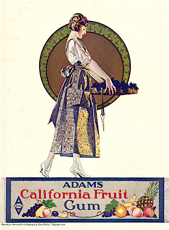 En revanche, Thomas Adams (1818-1905), Américain du New Jersey installé à Brooklyn, qu’il avait chargé de traiter l’affaire, conserva le stock de gomme lorsque le général, amnistié, rentra au Mexique. Ayant remarqué une fillette mâchant de la parafine White Mountain dans une pharmacie et se souvenant de l’habitude des Mexicains de mastiquer du chicle, il renonça à la transformation de celui-ci en caoutchouc synthétique souhaitée par le général et à laquelle il s’était essayé sans succès. Il déposa, en 1871, un brevet pour une machine destinée à la fabrication de la gomme à mâcher, et créa, avec son fils Horatio, dans le cadre de son entreprise Adams & Sons (2), une gomme pure à base de chicle, sans parfum, façonnée en bâtonnet et enveloppée dans un papier de couleur. L’accueil réservé à l’Adams New York Gum, « Snapping and Stretching », vendue dès 1871 dans les pharmacies au prix d’un penny la pièce, fut tel que la firme se mit à en vendre par millions et que, pour répondre à la demande, une immense usine modèle fut construite. Dès lors, Thomas Adams expérimenta divers parfums — à commencer par la salsepareille. Et en 1884, il lança son premier article parfumé, l’Adams’ Black Jack, aromatisé à la réglisse, lequel fut aussi le premier chewing-gum façonné en bâtonnets, forme qui est parvenue jusqu’à nous. Le succès fut immédiat— une popularité que le Black Jack allait conserver jusque dans les années 1970. En 1888, un nouveau chewing gum, Tutti Frutti, fut la première gomme à mâcher vendue dans une machine distributrice, et ce dans une station de métro de New York City. Devenue la plus importante fabrique de chewing gum du pays, la firme d’Adams s’unit, en 1899, à six des plus gros producteurs de chewing gum des États-Unis et du Canada, pour détenir le monopole de cette production (3). Elle devait compléter son succès par le lancement des Chiclets, petites dragées carrées au noyau de chewing-gum.